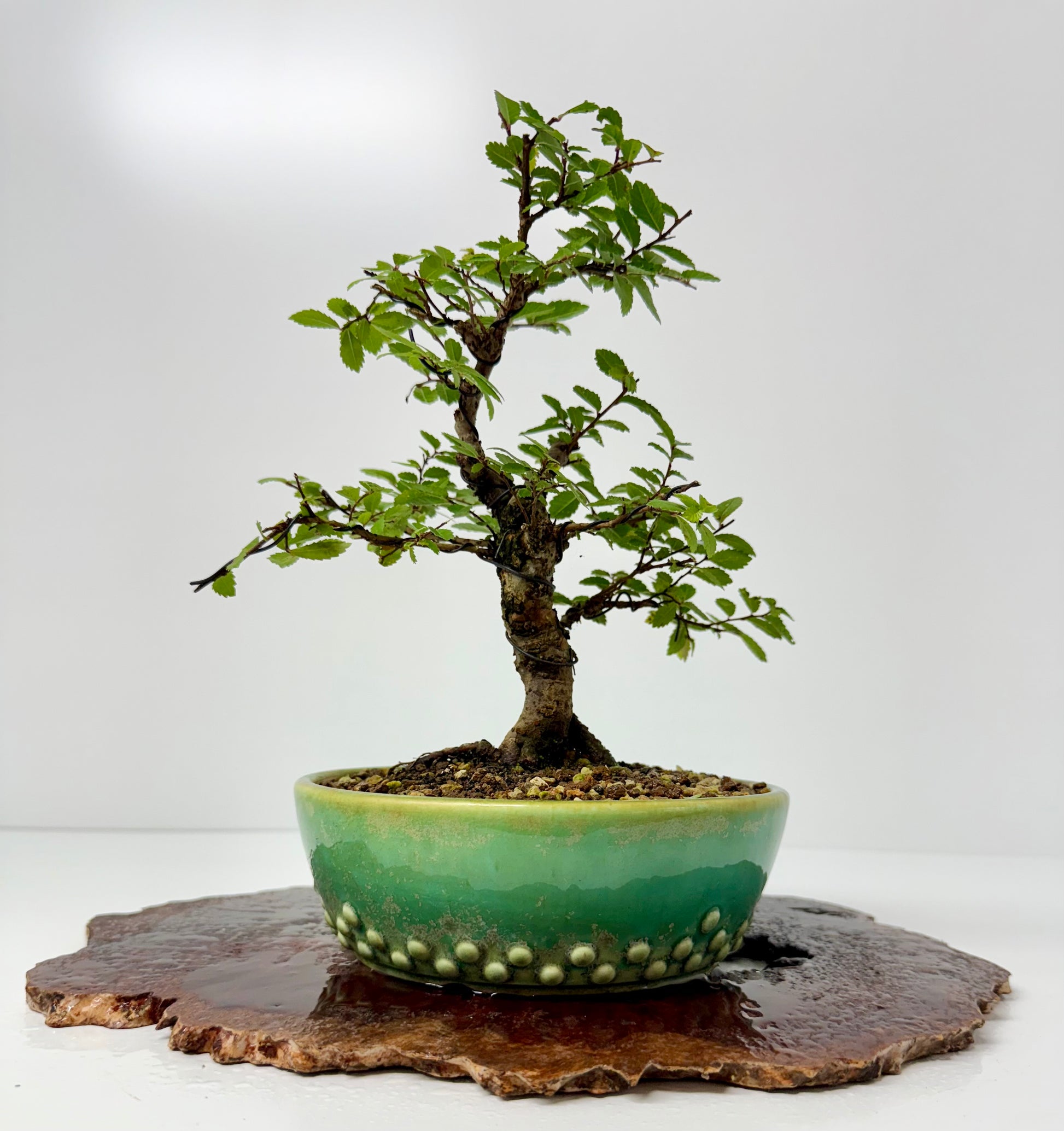 This tree was repotted early spring 2025 and is planted in a quality Chinese Yixing pot.